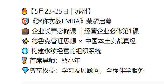 5月23日-25日蘇州場(chǎng)|經(jīng)營(yíng)企業(yè)必修第1課《迷你實(shí)戰(zhàn)EMBA》·構(gòu)建永續(xù)經(jīng)營(yíng)的組織系統(tǒng)